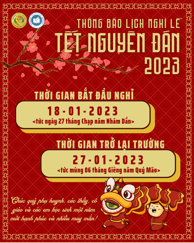 học sinh nghỉ từ thứ Tư, ngày 18/01/2023 đến hết thứ Năm, ngày 26/01/2023 (từ