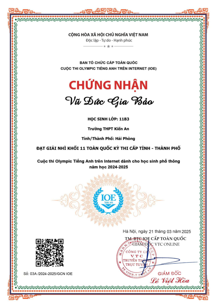 Ở lần thi thứ hai, năm học 2024-2025 trường có 07 học sinh được vinh danh toàn quốc cấp thành phố.