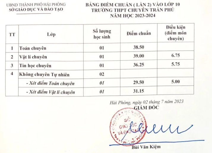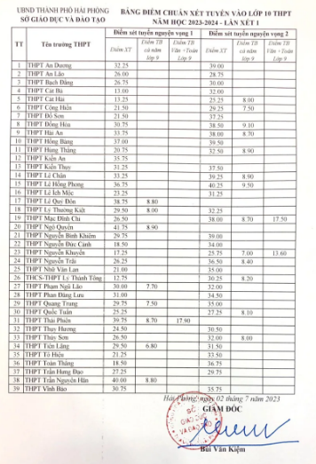 Điểm trúng tuyển nguyện vọng 1 vào lớp 10 năm học 2023-2024 của trường THPT Kiến An là 35,75